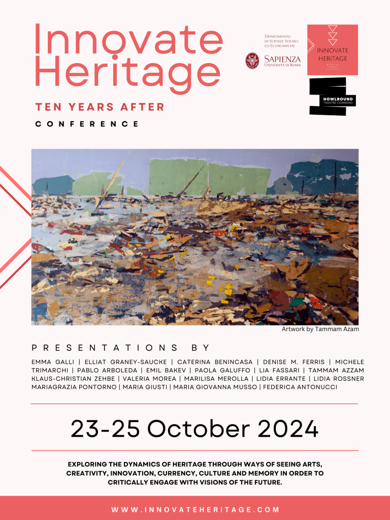 Innovate Heritage was founded through a conference in Berlin, 2014. 10 years after, the founders and several original contributors are joined by other scholars and artists in Rome to look back on 10 years of heritage, culture, memory, currency, art and creativity in order to critically engage with visions of the future.